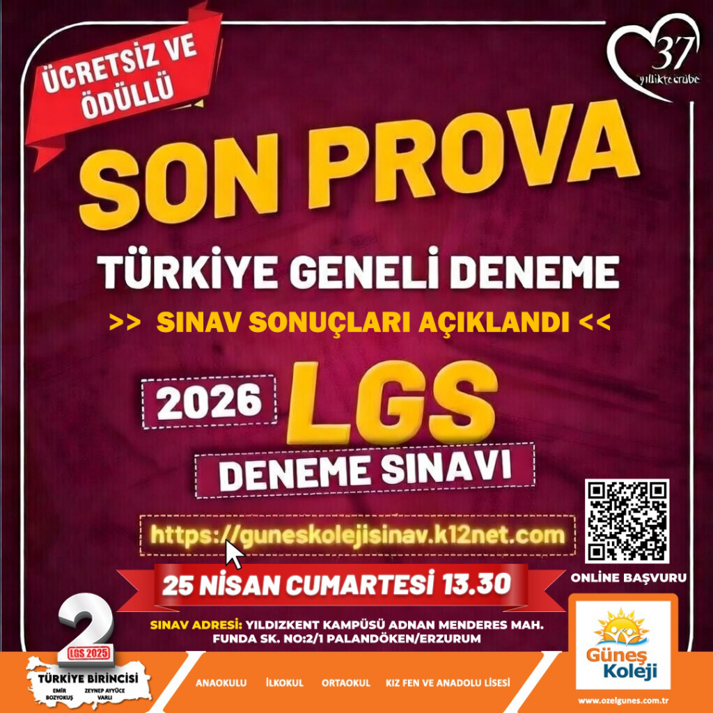 GÜNEŞ KOLEJİ SON LGS PROVA SINAVI Sonuçları Yayınlandı!